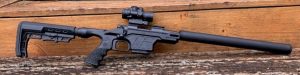 Built on the tried and tested Howa 1500 Mini Action, this model is for those who want something extremely quiet and more than just an “off the shelf” rifle. The barrel is re-profiled and cut down to 11 ¼” so the rifle is still over the legal limit with the suppressor removed, a custom made full length suppressor is fitted and the package is nicely finished off with a quality, adjustable pistol grip stock. Includes a rail but no sight.